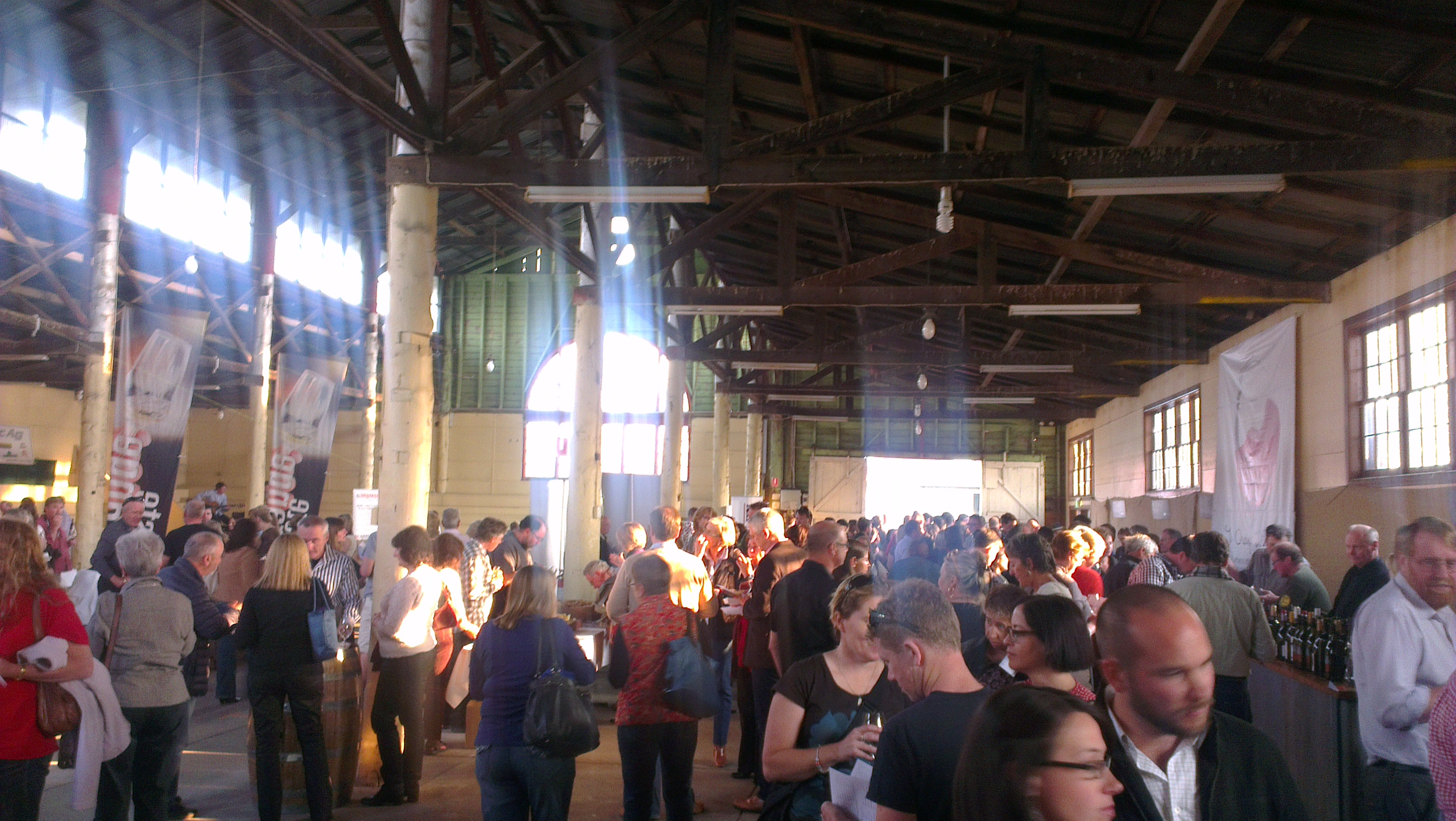 I had to leave the Printhie team to continue as I returned to Orange to take part in the public wine show tasting. The Orange Wine Show publishes the judging results and distributes them as a booklet to all attendees and the tasting is split into the classes that were judged. All wines shown are on hand to taste, not just the gold and the trophies, though these wines disappear rapidly. Local winemakers man the stalls, all looking dapper in their embroided Taste Orange shirts, usually with their own winery logo on the opposite side. The setting was the local showground, exuding rustic charm and filled fast with locals and tourists.