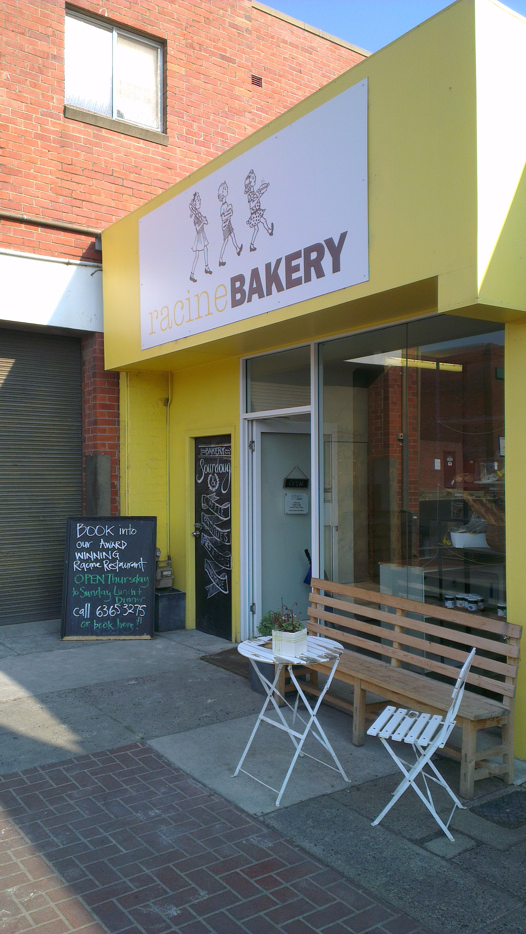An incredibly fresh seeded sourdough loaf, still warm from the baker’s oven at Racine Bakery (of La Racine Restaurant as above). Rich with aromatics evoking textural, saliva inducing memories of golden butter oozing from just carved slice. Tucked away in a corner of a supermarket car park in the middle of town, the glass shelves heaving under the weight of bright pastries, irresistible cakes and those perfect, heavy loaves of real bread.